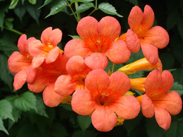 凌霄翠叶团团如盖,花大色艳,繁花艳彩