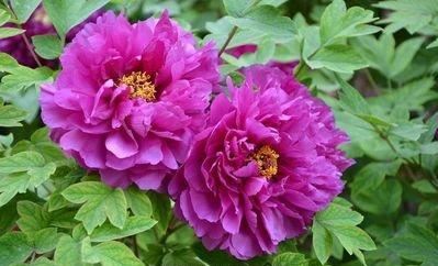 魏紫,落叶灌木,株型中高,半开展。枝较粗壮,一年生枝较短,节间较短。出自五代时期洛阳魏仁博家,具有极致的重瓣之美。是名贵的牡丹花品种,花紫红色,荷花形或皇冠形。花期长,花量大,花朵丰满,被推为“花后”[详细]